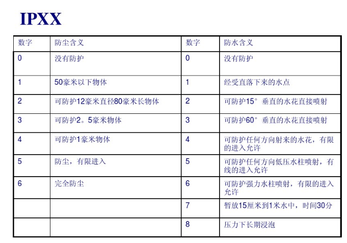 保護等級以ip后跟隨兩個數字來表示,數字用來明確保護等級。